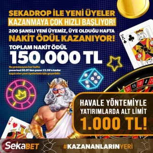 200 şanslı yeni üyemiz, üye olduğu hafta toplam 150.000 TL nakit ödül kazanıyor!