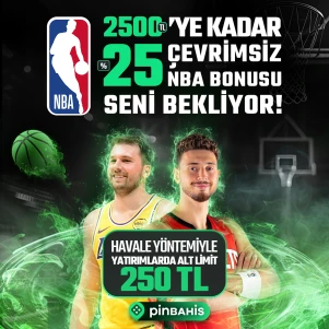 Yatırımının %25'i tutarda 2.500 TL'ye kadar bedava bahis fırsatıyla NBA heyecanına ortak olmak için hemen yatırımını yap!